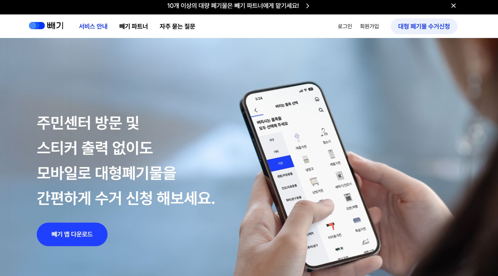 빼기 앱을 아시나요? 주민센터 방문이나 스티커 없이도 모바일로 대형폐기물을 처리해주는 서비스입니다.