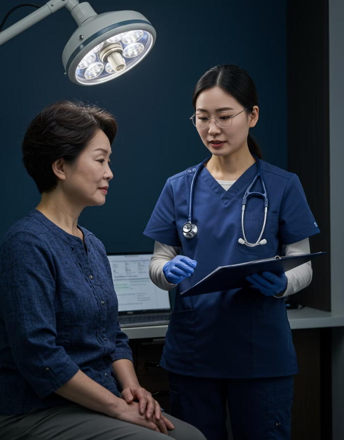- 생식기 검진: 육안으로 확인 가능한 생식기 사마귀가 있는지 검사합니다.